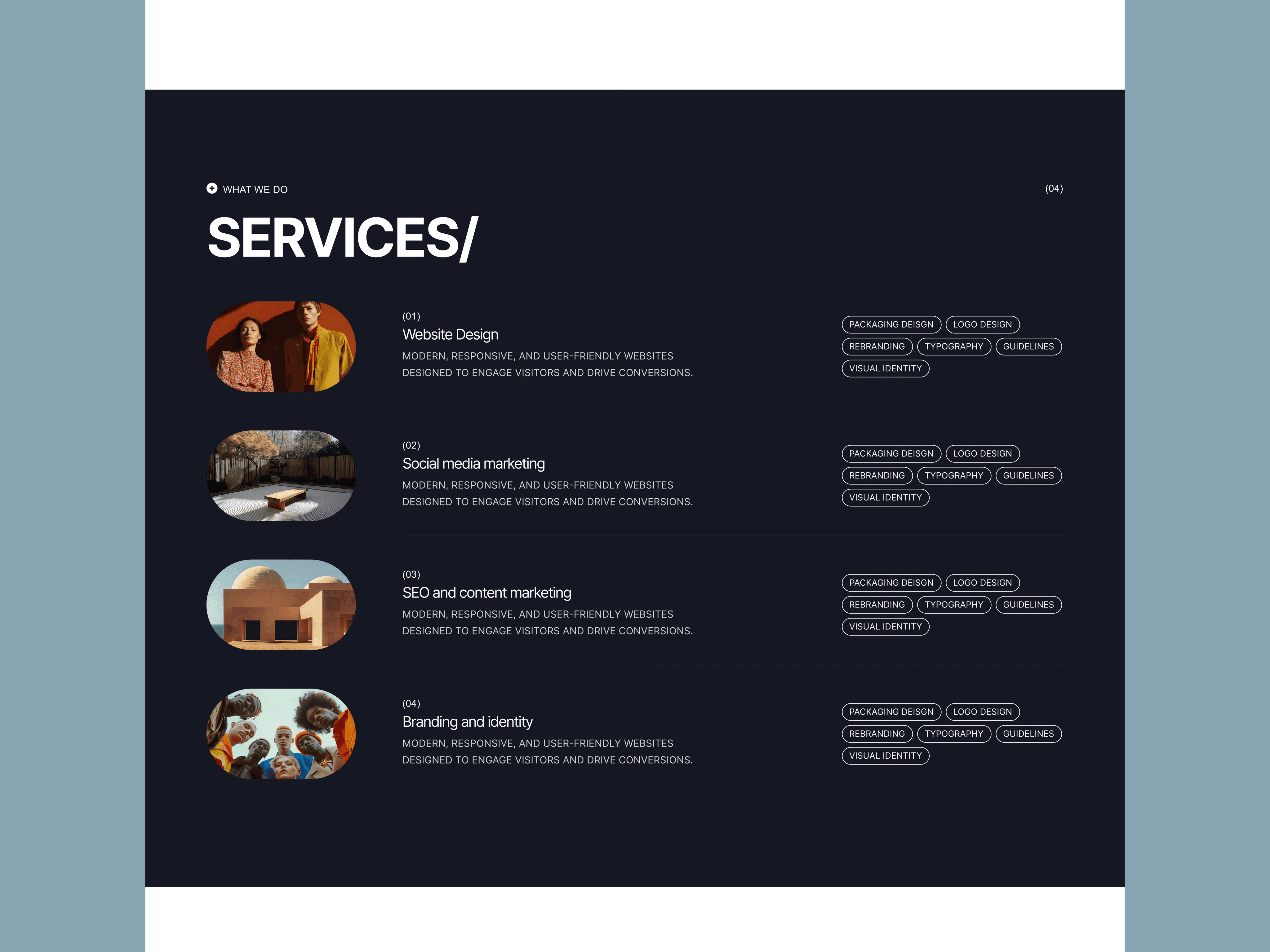 Typography: A sleek, contemporary typeface was chosen to reflect the sophistication and creative flair of a modern design studio.
