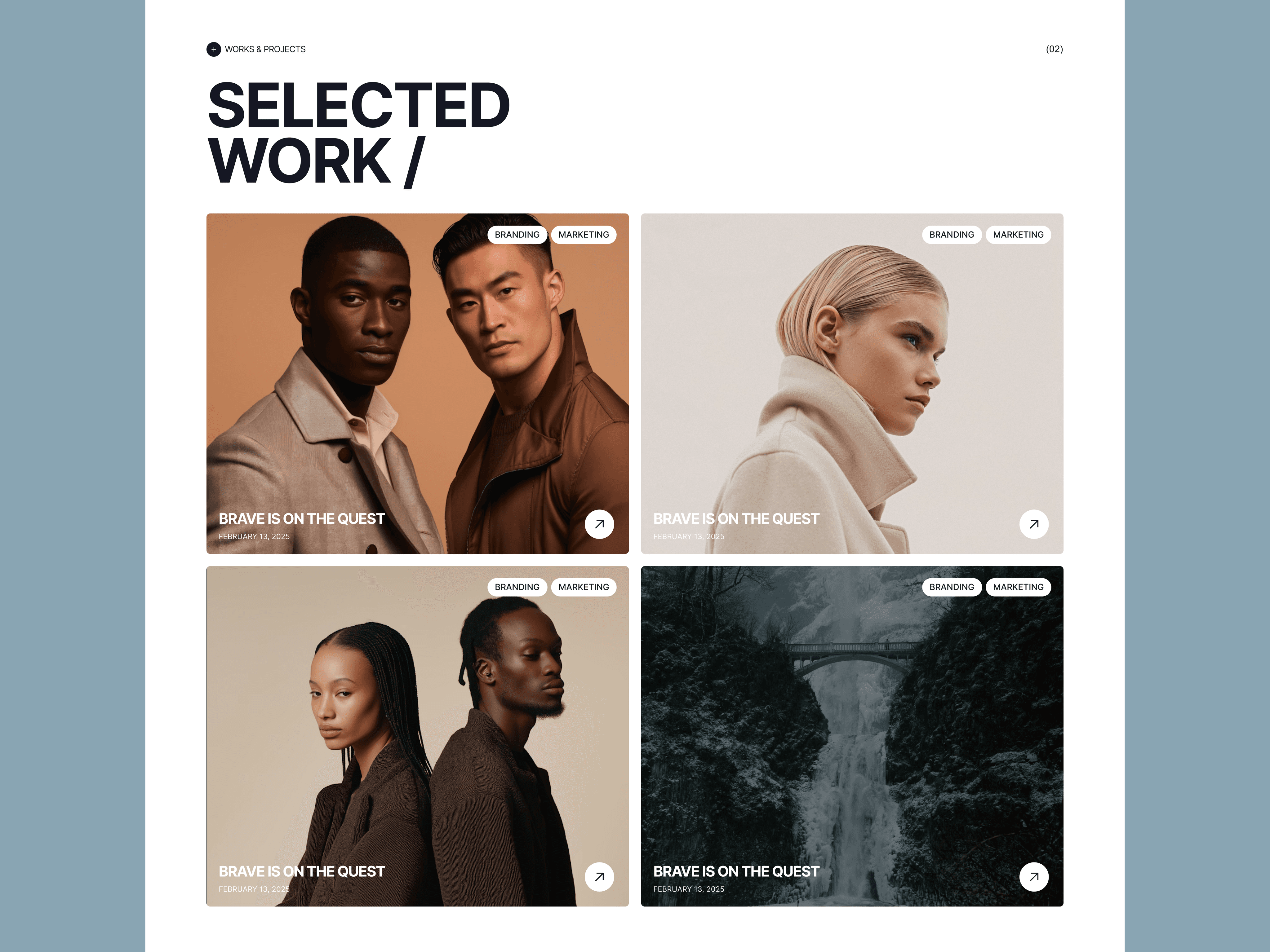 Color Palette: Deep, professional tones paired with high-contrast accents were used to establish a premium atmosphere, allowing the portfolio imagery to take center stage.